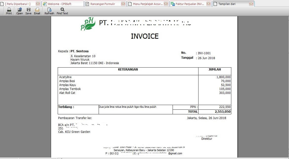 Namun, jika kita ingin membuat form seperti form yang sudah dimiliki oleh perusahaan, tentunya hal ini memerlukan perhatian khusus karena banyak yang perlu kita desainkan dan diubah agar dapat mengikuti format form yang ada. Untuk itu kami dapat membantu Anda dalam mendesainkan form ACCURATE Accounting agar sesuai dengan kebutuhan perusahaan. Kami dapat mendesainkan segala jenis form yang ada di ACCURATE untuk dapat mengikuti format yang ada, baik itu dari segi ukuran maupun informasi yang ada. Anda hanya perlu mengirimkan contoh tampilan form yang ingin didesainkan.