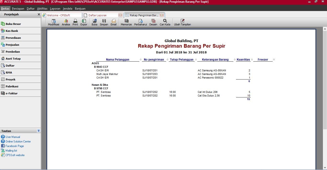 Sebagai contoh, berikut ini beberapa laporan yang sudah didesain yang memang belum ada secara standard di ACCURATE.