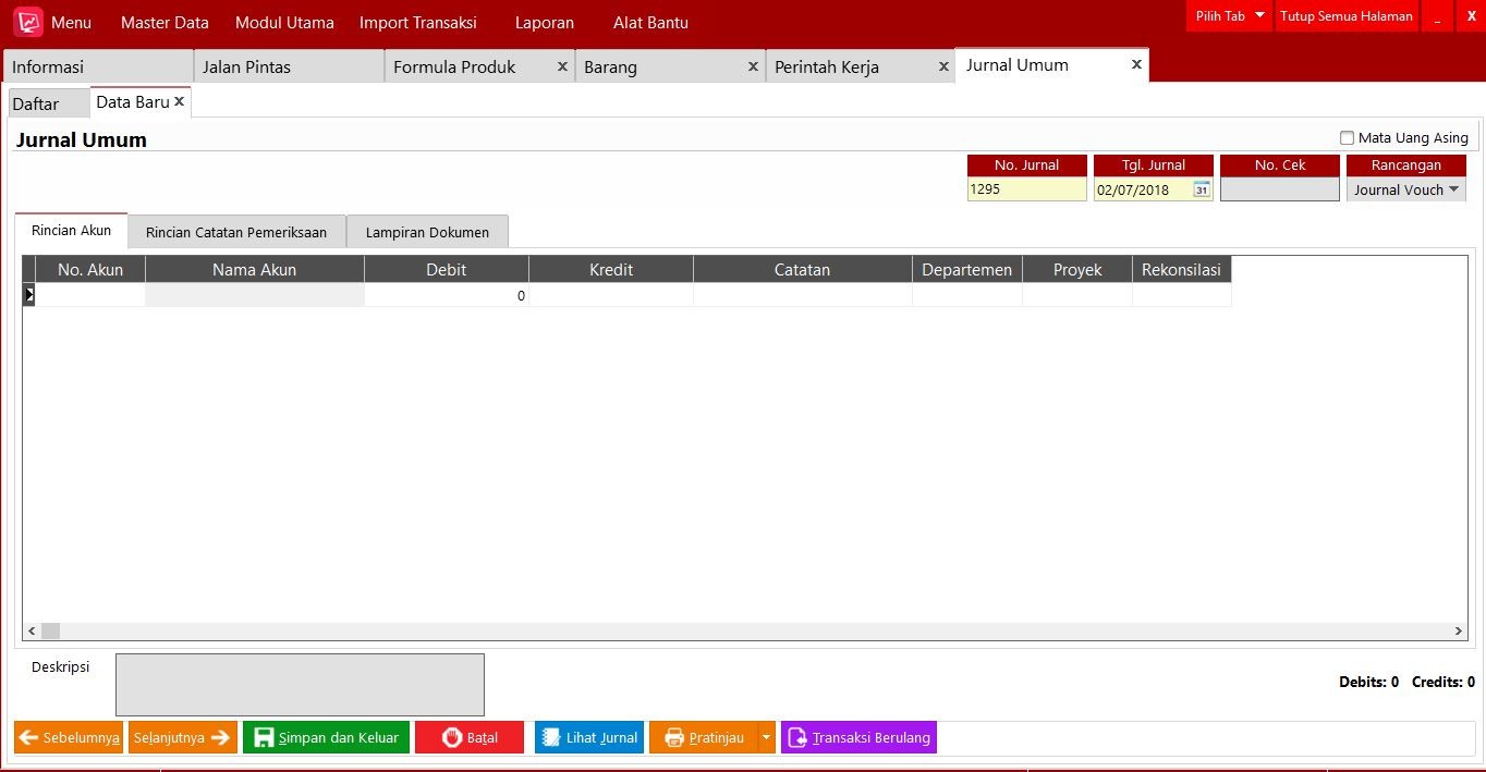 Contohnya saja untuk perkebunan kelapa sawit, pada tahap pembibitan sampai tahap perawatan dan pemupukan, banyak transaksi yang bisa kita input dengan modul Jurnal Umum (Jornal Voucher). Tinggal pembuatan jurnalnya saja yang kita harus pahami dengan baik di setiap transaksi tersebut. Dan juga untuk Chart of Account (COA) perusahaan perkebunan, biasanya terdapat akun Tanaman Belum Menghasilkan (TBM) dan Tanaman Siap Produksi (TSP). Semua pengeluaran biaya untuk pembibitan, pemupukan, dan lain sebagainya sebelum pohon/kebun kita panen bisa kita alokasikan ke akun TBM. Sementara ketika tanaman tersebut sudah mampu menghasilkan maka bisa kita reklas TBM dari tanaman tersebut ke akun TSP. Akun TSP ini biasanya masuk kategori Aktiva Tetap yang mana nantinya bisa disusutkan.