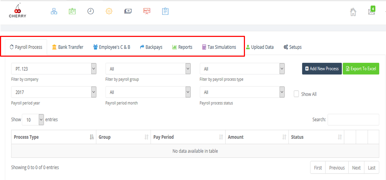 Beberapa tampilan dari Cherry HRIS sebagai solusi software payroll Indonesia: